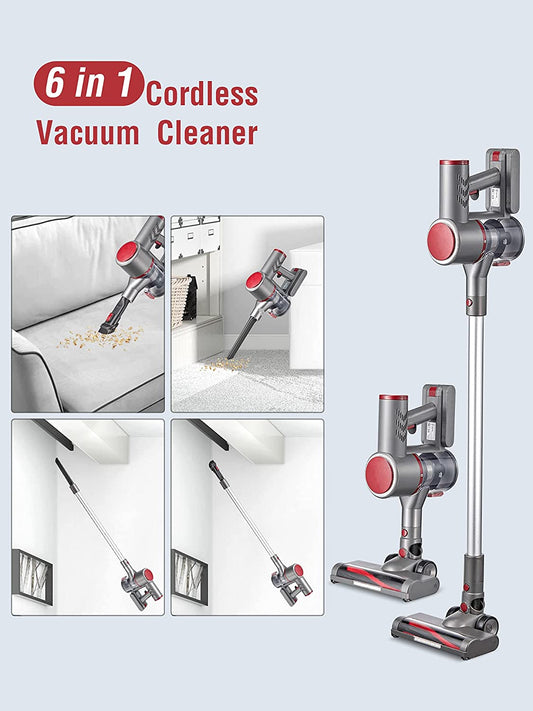 Kealive Battery Vacuum Cleaner, Cordless Vacuum Cleaner with 22000 Pa Strong Suction Power, 6 in 1 Vacuum Cleaner, Cordless Vacuum Cleaner, 40 Minutes Running Time, 2 Adjustable Suction Levels for Carpets, Wooden Floors, Pet Hair, Carpets