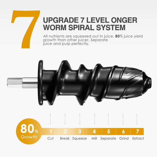 Juicer, Aicook Slow Masticating Juicer, Cold Press Juicer Machine Easy to Clean, Higher Juicer Yield and Drier Pulp, Juice Extractor with Quiet Motor and Reverse Function, BPA-Free, with Recipes