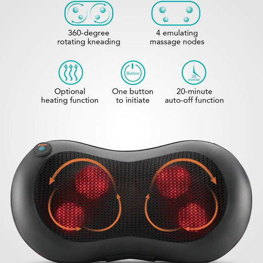 Snap-On Neck Massager with Heat Back Massage Pillow