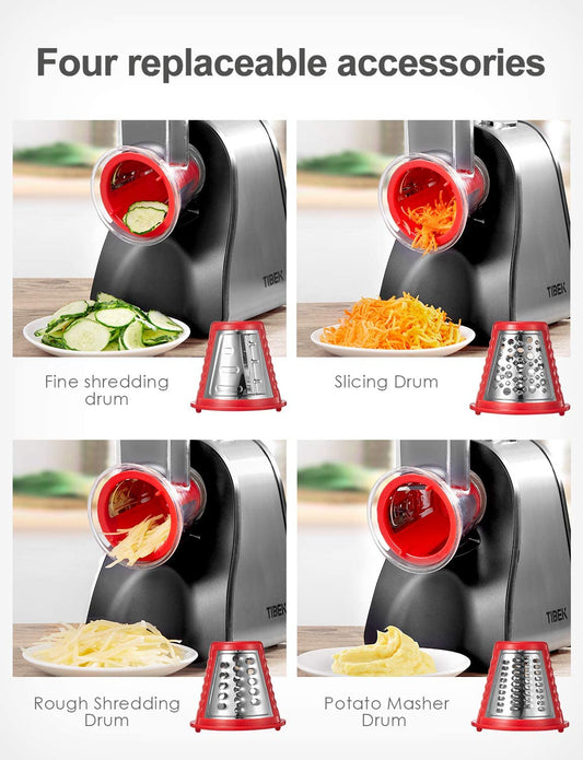 TIBEK Electric Cheese Grater Shredder, Electric Vegetable Slicer Professional Salad Shooter for Home Kitchen Use, One-Touch Easy Control