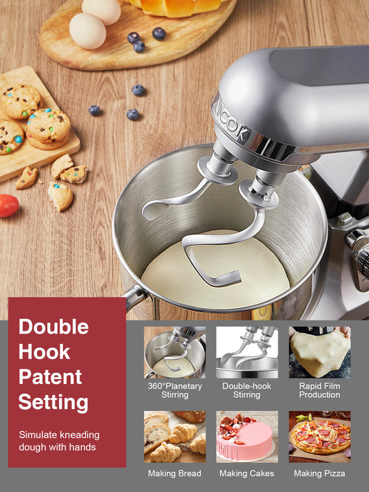 Stand Mixer with Double Dough Hook, 6-speed Dough Mixer with Tilting Head-5.5Qt Stainless Steel Bowl, Including Beater, Dough Hook, Whisk and Splash Guard, Low Noise