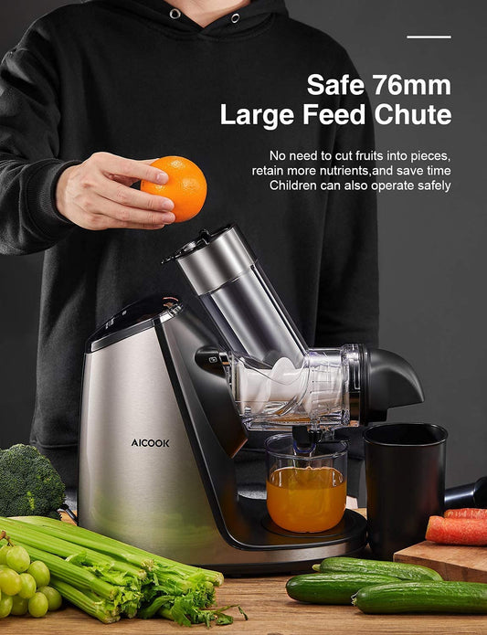 Slow Masticating, 3in Large Feed Chute, Stainless Steel, Easy to Clean