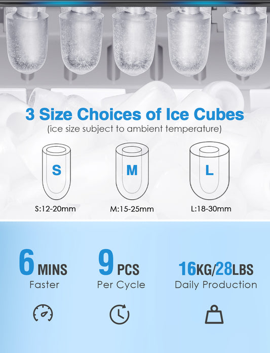 AICOOK 2.4L Ice Maker Countertop, 9 Cubes in 6 mins, 3 Ice Sizes, LED Display, Self Cleaning, Quiet Ice Machine with Timer, Scoop and Basket Included