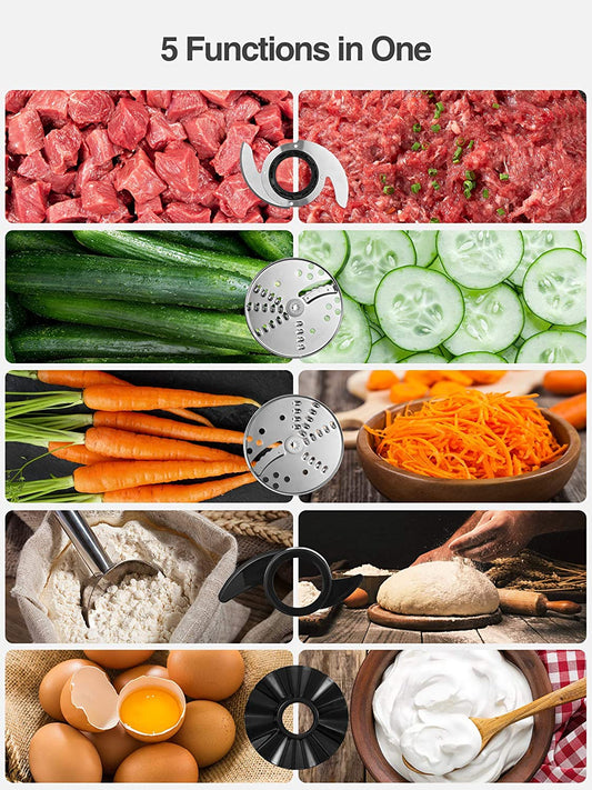 AICOOK 16 Functions Food Processor, 700W, 12-Cup Food Chopper with 4 Speeds for Chopping, Pureeing, Mixing, Shredding, Whisking Eggs and Slicing