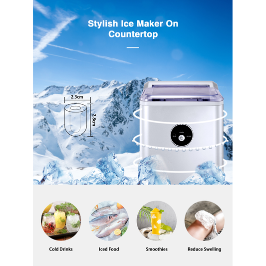 AICOOK | Ice Maker Countertop, 28 lbs. Ice in 24 Hrs, Portable Ice Maker Machine 2L with LED Display Perfect for Parties Mixed Drinks, Ice Scoop and Basket