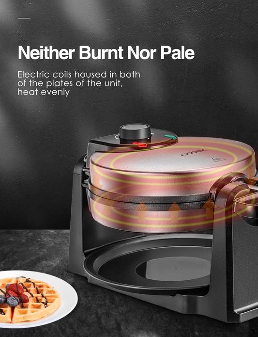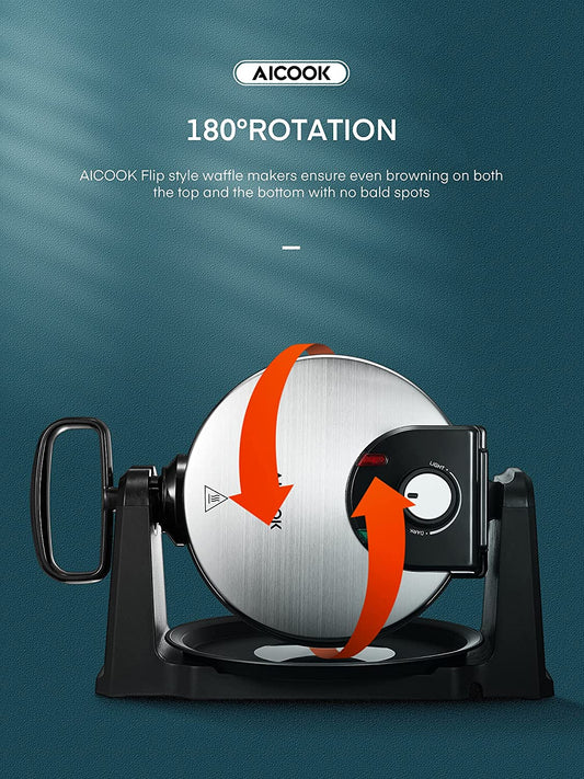 AICOOK | Classic Rotating NonStick Belgian Waffle Maker, 1100W Browning Control, Removeable Drip Tray for Easy Clean Up, Browning Control, Stainless Steel