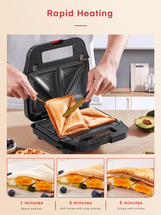 AICOOK Waffle Maker 3 in 1, Sandwich Maker with 3 Detachable Non-Stick Plates