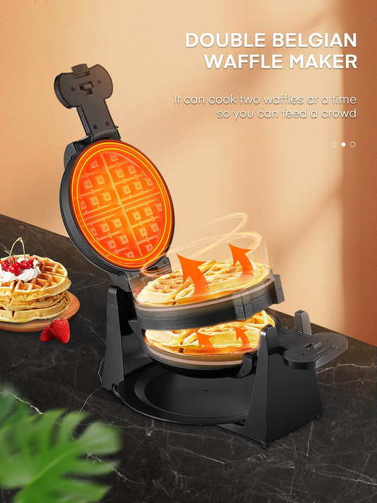 AICOOK | Double Waffle Maker 180° Flip, Belgian Waffle Iron 8 Slices One Time, Nonstick Plates, Removable Drip Tray & Rotating, 1400W Adjustable Temperature Control Cool Touch Handle, Black