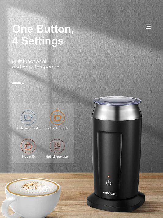 AICOOK Milk Frother Electric, Hot & Cold Milk Frother and Steamer with Strix Control, Coffee Frother With Auto Magnetic Drive Rotor