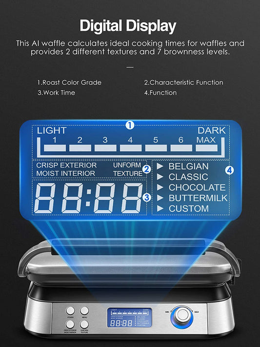 AICOOK Smart Pro Belgian Waffle Maker, 5 Different Programs, Sliver