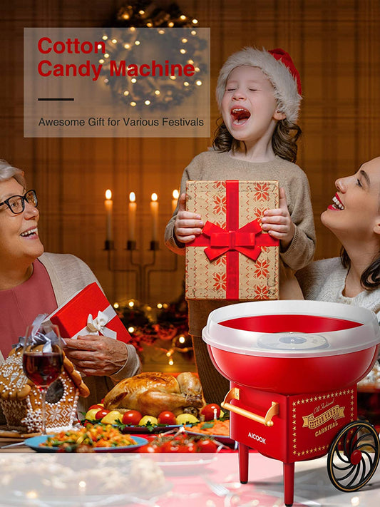 AICOOK Nostalgia Cotton Candy Machine, 500W, Candy Floss Maker For Party, Sugar Scoop and 10 Cones Included, Red