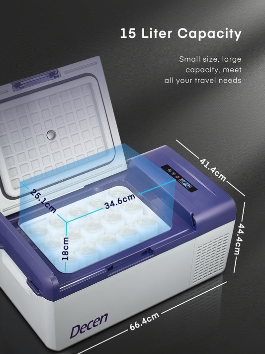 Decen Portable Fridge 12 Volt Car Refrigerator 16 Quart Fridge for Car, RV, Van, Vehicle, Boat, Portable Freezer 15L (-4℉~68℉) for Camping, Travel, Fishing Outdoor