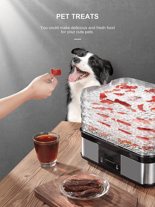 Dehydrator, Fruit & Vegetable Dryer with 5 BPA-Free Adjustable Trays, Timer (48H) & Adjustable Temperature (35-70 ° C), Digital Controls, Great for Fruit, Meat & Vegetables