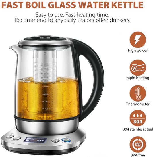 DEALIFE Electric Tea Kettle, 1.7L Variable Temperature Kettle, Glass, Stainless Steel, Mode kt600