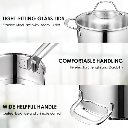 DEIK 10-piece stainless steel cookware set, suitable for induction cookers, with lids, stainless steel cookware, pot sets