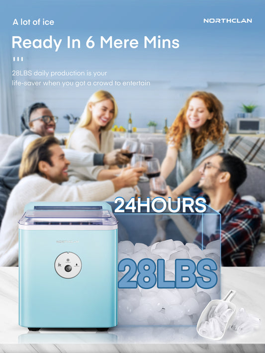 Ice Maker Countertop, 28 lbs Ice In 24 Hrs, 9 Ice Cubes Ready In 5 Minutes, Portable Ice Machine 2L With Led Display Perfect for Parties Mixed Drinks, Ice Scoop & Basket, Mint Blue, NORTHCLAN