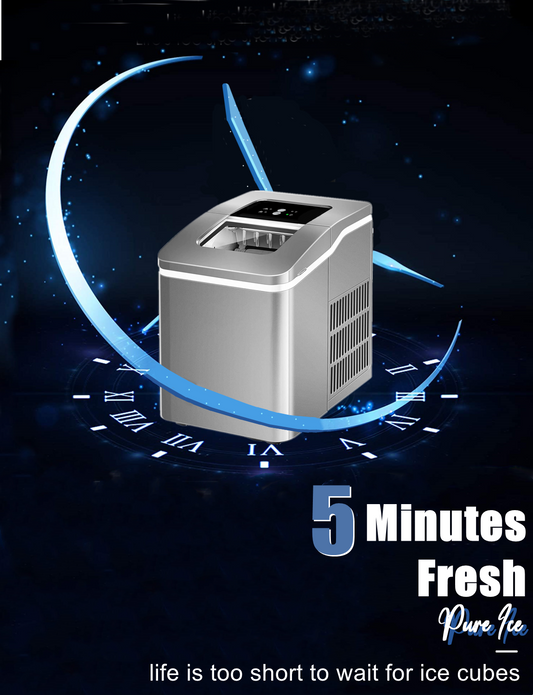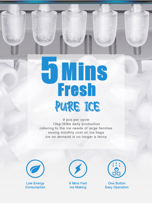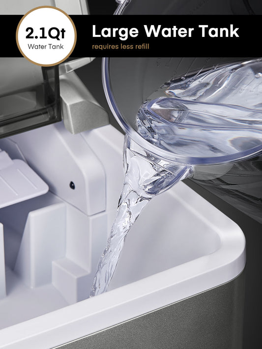 Ice Maker Machine Countertop, 28 lbs in 24 Hrs, 9 Cubes Ready in 5 Mins, 2 Ice Sizes, 2 L with Self-clean, LCD Display, Silver