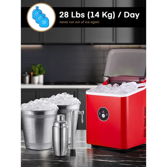 Ice Maker Countertop, 28 lbs Ice In 24 Hrs, 9 Ice Cubes Ready In 5 Minutes, Portable Ice Machine 2L With Led Display Perfect for Parties Mixed Drinks, Ice Scoop & Basket (Retro Red)