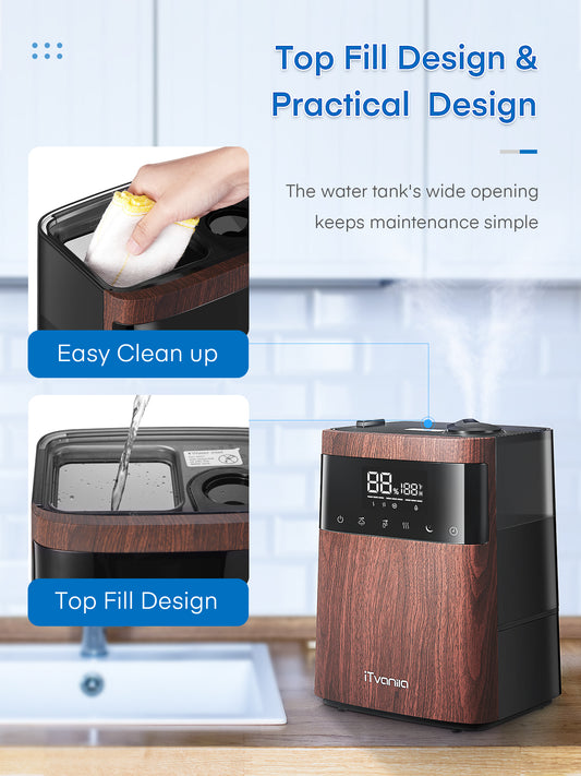 Humidifiers, 5.5L Top Fill Cool and Warm Mist Humidifier with Essential Oil Built-in Humidity Sensor, Humidifiers with Timer Setting Last up to 55 Hours (Wood Grain)