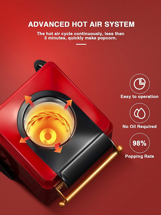 Hot Air Popcorn Popper Maker, 1200W Nostalgia Popcorn Machine with Measuring Cup, Fast Popping, ETL Certified & BPA Free, for Party Christmas and Movie Nights