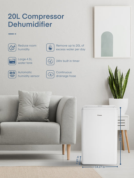 iTvanila 20LEB Dehumidifier with Touch Panel & 4.5L Large Water Tank, Laundry Drying, Swing Mode, 24Hr Timer, Continuous Drainage, Auto-On/Off, APP Control 20L