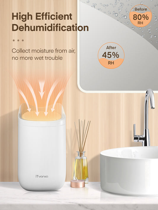 iTvanila Small Dehumidifier, Quiet Mini Dehumidifiers with 600ML (20oz)Tank, Portable Dehumidifier for Bathroom, Closet and, RV, Auto Off and Defrost Demidihufiers, White