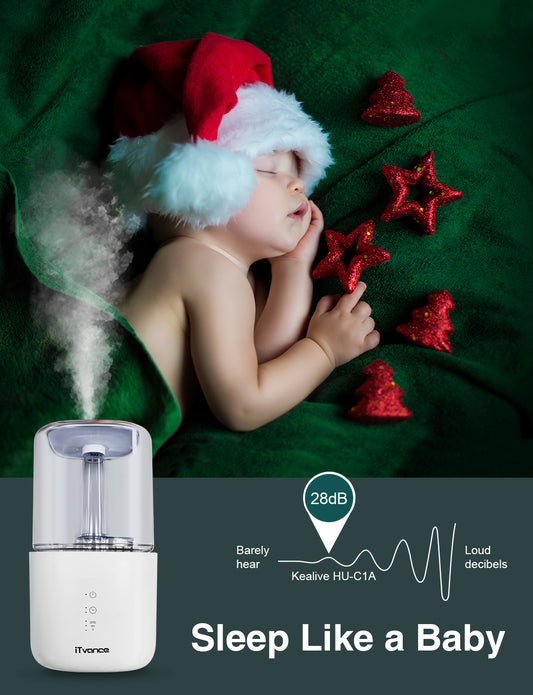 iTvanila Humidifier, Bedroom Cold Mist Humidifier, 2.7L/0.7 Gal Baby Humidifier, Output Adjustable, Lasts to 30 Hours, Whisper-Quiet, Auto Off, Filterless Humidifier for Home Office, White