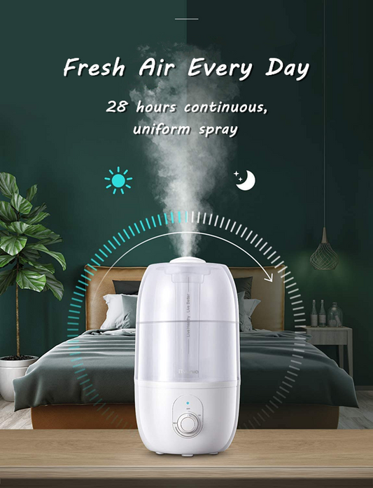 iTvance Humidifier, Bedroom Cold Mist Humidifier, 4.5L Gal Baby Humidifier, Output Adjustable, Lasts to 30 Hours, Whisper-Quiet, Auto Off, Filterless Humidifier for Home Office, White
