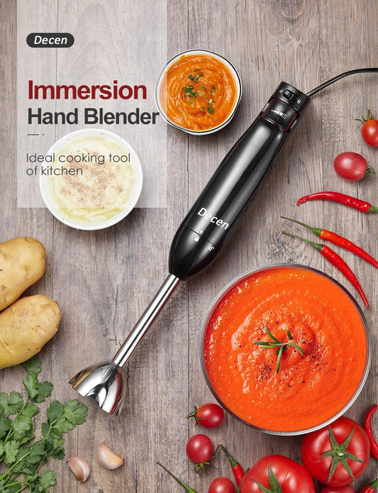 Immersion Stick Blender, 1000W Hand Blender Electric with Smart Step-less Speed, Mini Mixer with 4 Sharp Blades, Ergonomic Handle for Speed Control, Food Processor for Smoothies, Sauces, Baby Food