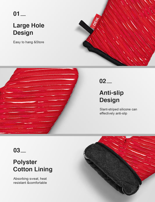 DEIK Oven Gloves and Pot Holders, Heat Resistant Gloves up to 300°C, Silicone Non-Slip Grill Gloves, Suitable for Cooking, Baking, Grilling Red