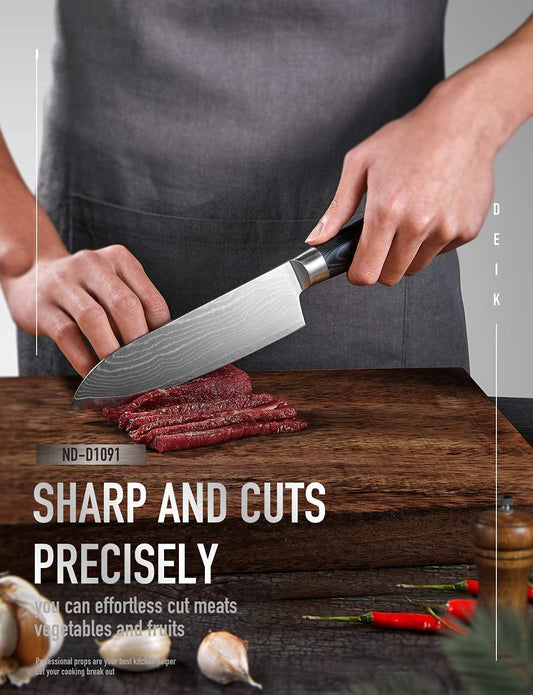 DEIK-Kitchen Knife Damascus Knife, 20 cm Professional Knife Damask Meat Knife, VG10 Stainless Steel Chef's Knife 67 Layers Damascus Steel G10 Handle Elegant Gift Box