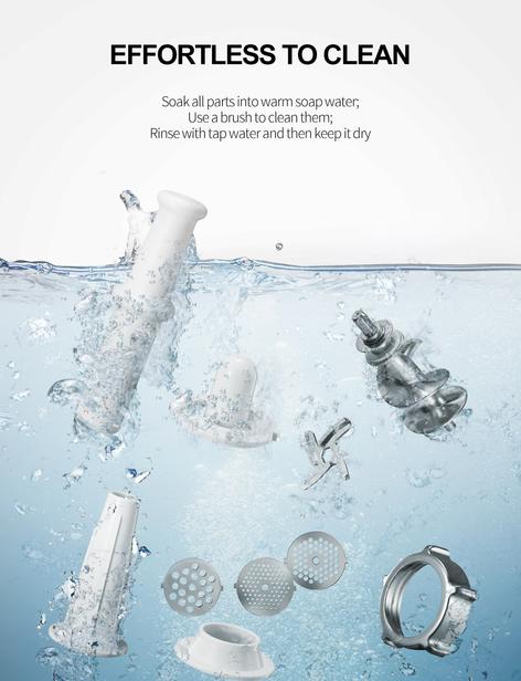 ★【Easy to Clean】Amazingly convenient to assemble or dismantle, and easy to clean after using. Features a reverse("R") switch button for unclogging machine. Please clean all parts thoroughly with warm water. ☆Note: apply neutral detergent when cleaning. Not for the dishwasher. ☆