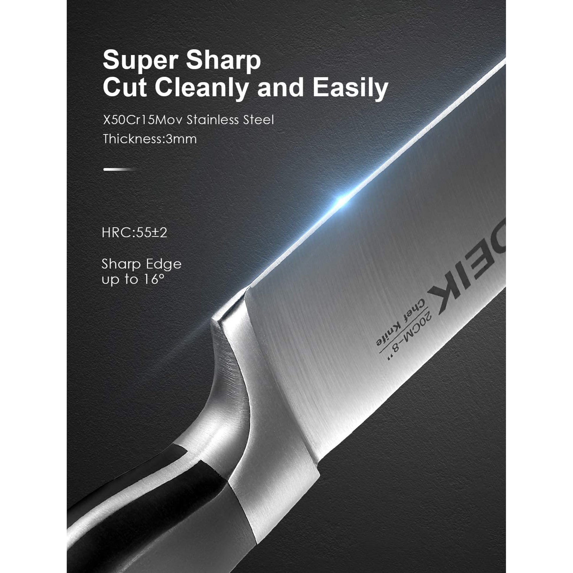 Deik Knife Sets, 15 Pieces German Stainless Steel Kitchen Knife Block Sets