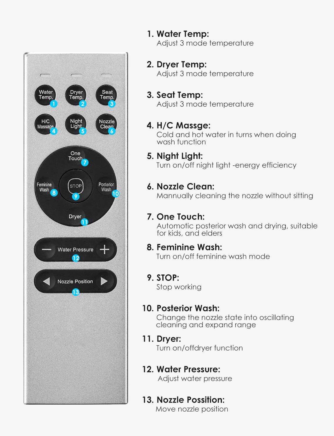 UFFU Smart Bidet Toilet Seat, Easy DIY Installation, Adjustable Heated Seat and Water with Air Dryer, Advanced H/C Massage, Nightlight, Remote Control